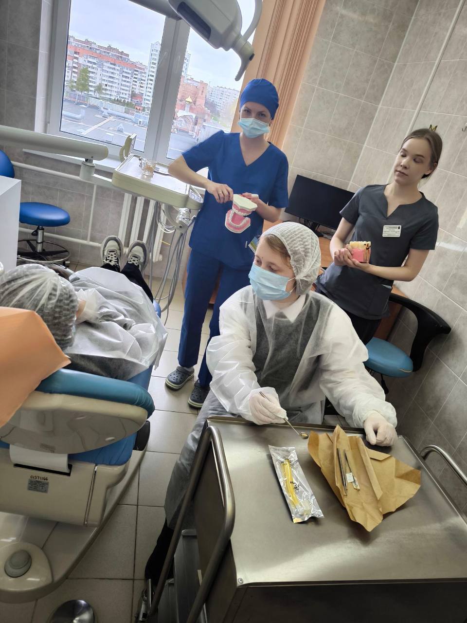 Каждый гимназист смог подержать стоматологические приборы, заглянуть в полость рта и попробовать оценить клиническую картину.